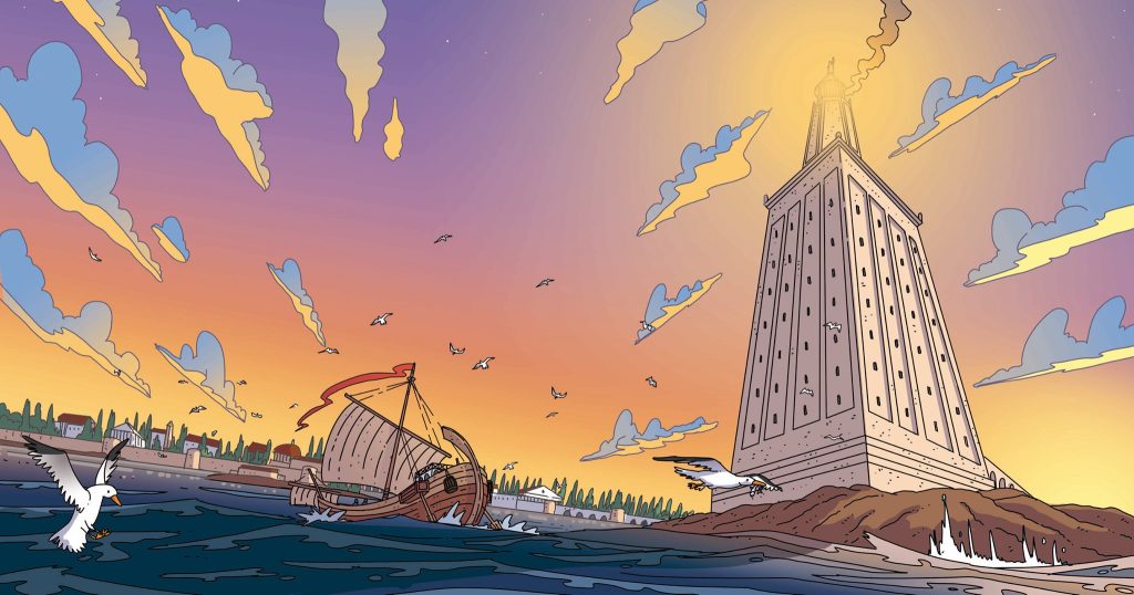El Faro de Alejandría, también conocido como la Torre de Faros, fue una de las estructuras más imponentes y admiradas del mundo antiguo. Construido entre los años 280 y 247 a.C. en la pequeña isla de Faros, frente a la ciudad de Alejandría, su propósito era guiar a los navegantes hacia el puerto de esta próspera ciudad egipcia, que era un importante centro de comercio y cultura.